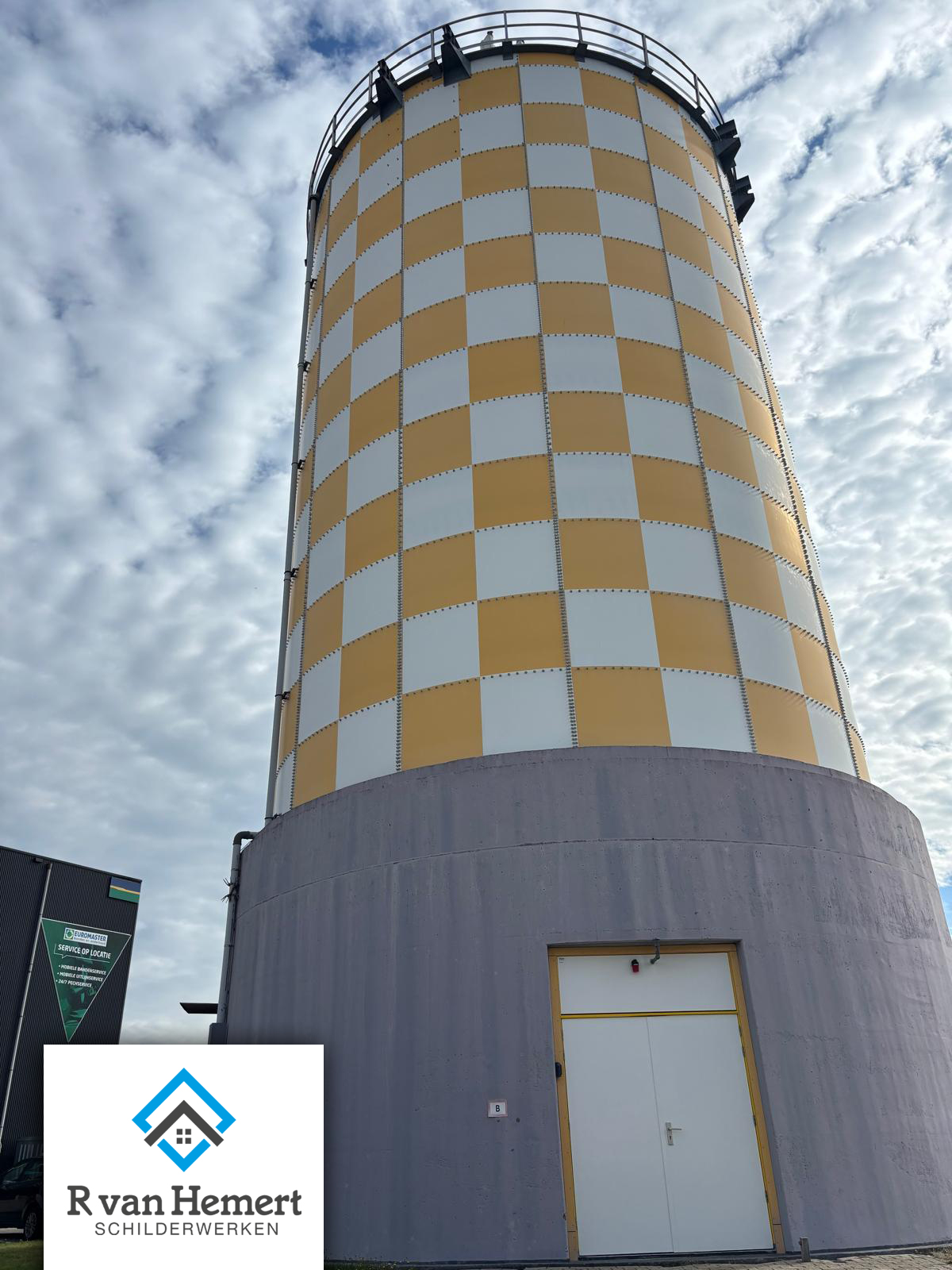 Dé watertoren van Alphen a/d Rijn. Deze toren is de bluswatervoorziening voor bedrijventerrein de Schans. Ook hier is het belangrijk dat de deuren en kozijnen goed worden onderhouden. Fijn dat ook gemeente Alphen a/d Rijn onze vakschilders heeft gevonden!